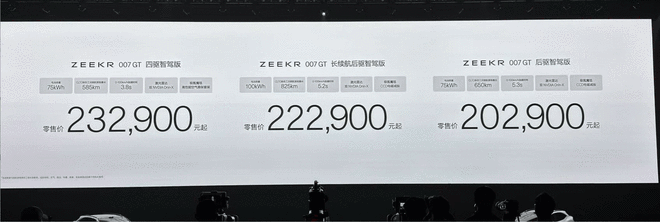 4月15日报道极氪品牌四周年庆典现场,万众瞩目的极氪007GT正式全球上市,限时权益价19.99-22.99万。作为极氪旗下第二款猎装车型,007GT以“科技猎装轿跑”为定位,融合猎装美学、超跑性能与智能科技,重新定义高端纯电市场标杆。