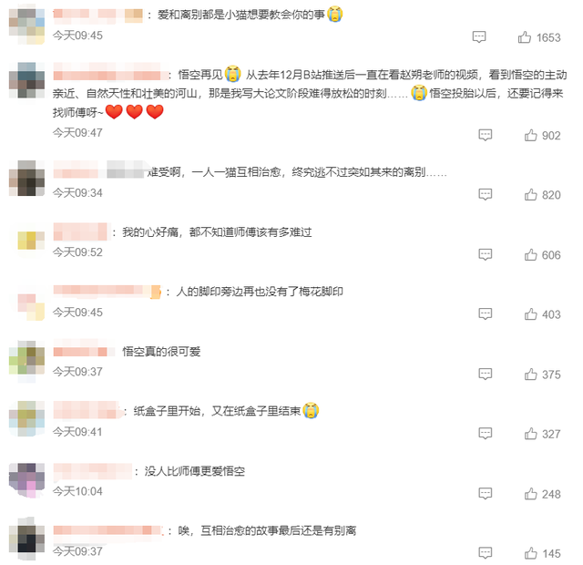 消息传出后,大量粉丝在评论区留言安慰,表达对“悟空”离世的惋惜和对赵朔的关心,相关话题也登上热搜。
