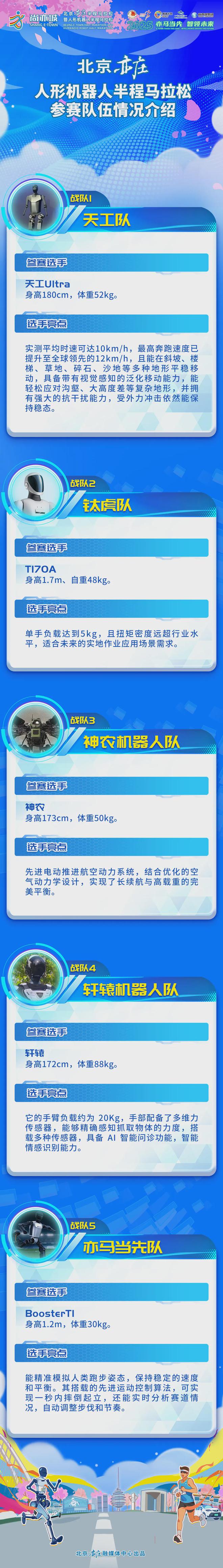 北京人形机器人半马参赛名单揭晓:宇树、众擎等参加 访客 2025-04-18 16:02:12 19619 抢沙发 默认 据北京亦庄消息,2025北京亦庄人形机器人半马参赛名单揭晓,此次马拉松共有21个战队参赛。参赛机器人包括宇树G1、众擎PMOI、夸父等型号。 标签: 北京 机器人 海报 阅读 QQ 分享 微博分享 微信分享 分享 上一篇工信部:截至3月底累计建成开通5G基站439.5万个 下一篇光线传媒王长田:哪吒3制作难度非常高,不再做票房预测 工信部:截至3月底累计建成开通5G基站439.5万个上一篇 光线传媒王长田:哪吒3制作难度非常高,不再做票房预测下一篇 相关推荐 北京机器人 经典之上重塑传奇,BJ40探险家上市,起售价13.49万元起 2026-01-17 北京越野B81 2.0共创版亮相,开启全民共创模式新实践 2026-01-17 王腾新成立五家企业,探索成功之路的五大支点 2026-01-08 智元机器人与MiniMax联手,全模态AI加速融入机器人应用 2026-01-05 三星AI OLED Bot概念机器人亮相CES 2026,大尺寸OLED屏幕机器人亮相 2026-01-04 稚晖君发布首款个人机器人启元Q1 2025-12-31 贾跃亭年终总结,归心似箭,遥望北京 2025-12-29 孙东旭卸任东方甄选珠海公司职务,俞敏洪接任新任领导职务 2025-12-29 发表评论取消回复 快捷回复: 评论列表 (暂无评论,19619人围观)参与讨论 还没有评论,来说两句吧...