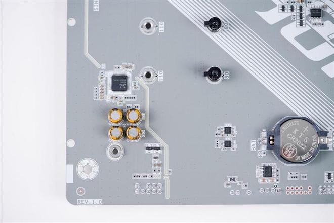供电部分的散热装甲也有额外的磁吸装饰盖。可以看到在主板正面连一个螺丝都没有,全部都隐藏在背面。