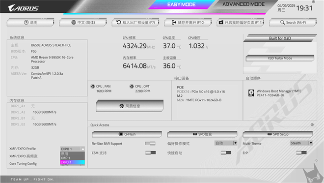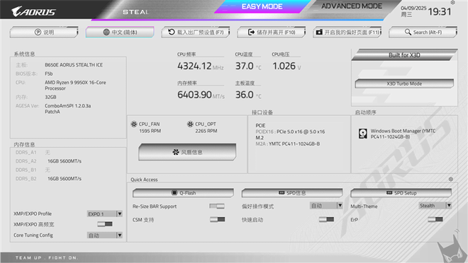 如果使用锐龙X3D系列CPU,右上角可以快速设置X3D模式,系统主要信息也都可以直接查看。