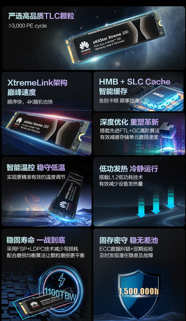 读速7400MB/s!华为坤灵eKitStor Xtreme 200 SSD上架京东:1TB卖559元