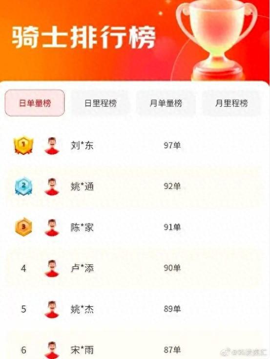 4月22日,网上一张图片显示,刘*东以97单的单量排在京东骑手排行榜“日单量榜”第一名。22日晚,京东方面回复现代快报记者,此为不实信息,榜单排名为虚构。