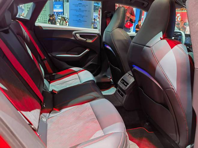 车尾部分,贯穿式尾灯和小鸭尾扰流板的设计进一步增强了运动感,同时尾灯组采用了第二代数字OLED技术,可实现车辆间的灯光交互,提升道路安全性。