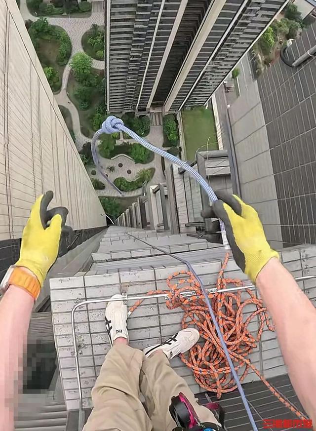 后来赵亮接触到了国际工业绳索技术协会(IRATA)标准,便进行了专业学习并考取认证。“这套标准在锚点设置、绳索使用等方面都有严格要求。”赵亮说,“经常有网友看视频后认为我锚点设置草率,但实际上,我们是根据要求选择的楼顶钢结构、水泥柱等牢固自然锚点,或在墙面安装可拆卸锚点装置。”