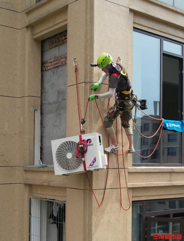 在百米高空修空调是什么体验?近日,长沙小伙赵亮(化名)用第一视角记录下了自己从47楼下降到42楼,在140米高空维修空调外机的全过程,让百万网友直呼“隔着屏幕都腿软”。“高空作业并没有大家想象中那样危险,只要按规范操作就没有问题。”4月27日,赵亮告诉记者,他从事该行业已有十多年,最高的一次高空作业有240米。
