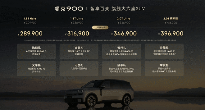 领克900上市限时价格为28.99-39.69万元。