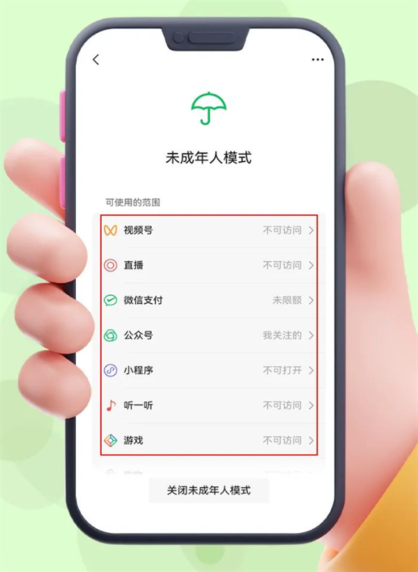 与手机联动!微信未成年人模式上线:默认关闭游戏、直播