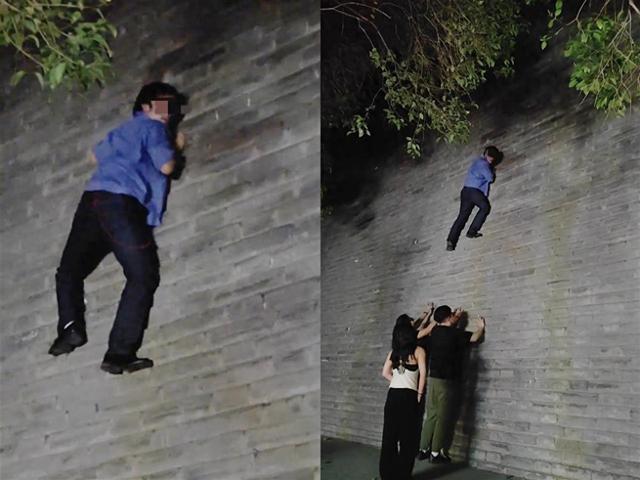 近日,一男子夜间违规攀爬西安城墙的视频,引发关注。视频中,这名男子攀爬到城墙内侧墙面距离地面3米左右的位置,下方围观的人劝其赶紧下来,一旁路边还有人拍摄。