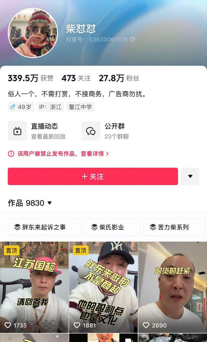 网红“柴怼怼”被禁止关注,此前与于东来互怼