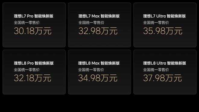 5月8日报道今日晚间,理想汽车举行“L系列智能焕新版发布会”,重磅发布L6、L7、L8及L9四款智能焕新版车型。其中,理想L6智能焕新版已在上海车展期间公布售价,新车提供两款配置,价格分别为24.98万元和27.98万元。而理想L7智能焕新版售价30.18-35.98万元,理想L8智能焕新版售价32.18-37.98万元,理想L9智能焕新版售价40.98-43.98万元,今天开启大定,下周开启交付。作为中国家庭智能SUV市场的领军品牌,此次升级不仅延续了理想“创造移动的家”的品牌理念,更在辅助驾驶、智能座舱、底盘调校、外观设计等方面实现了全方位进阶。