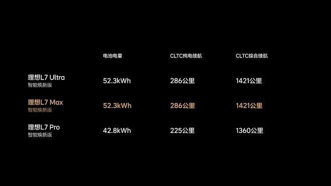 增程系统的更新同样务实。在L9 Pro/Ultra、L8/7 Ultra标配52.3kwh大电池的基础上,L8/7 智能焕新版Max版本将搭载同款大电池,让更多用户体验到大电池增程系统。