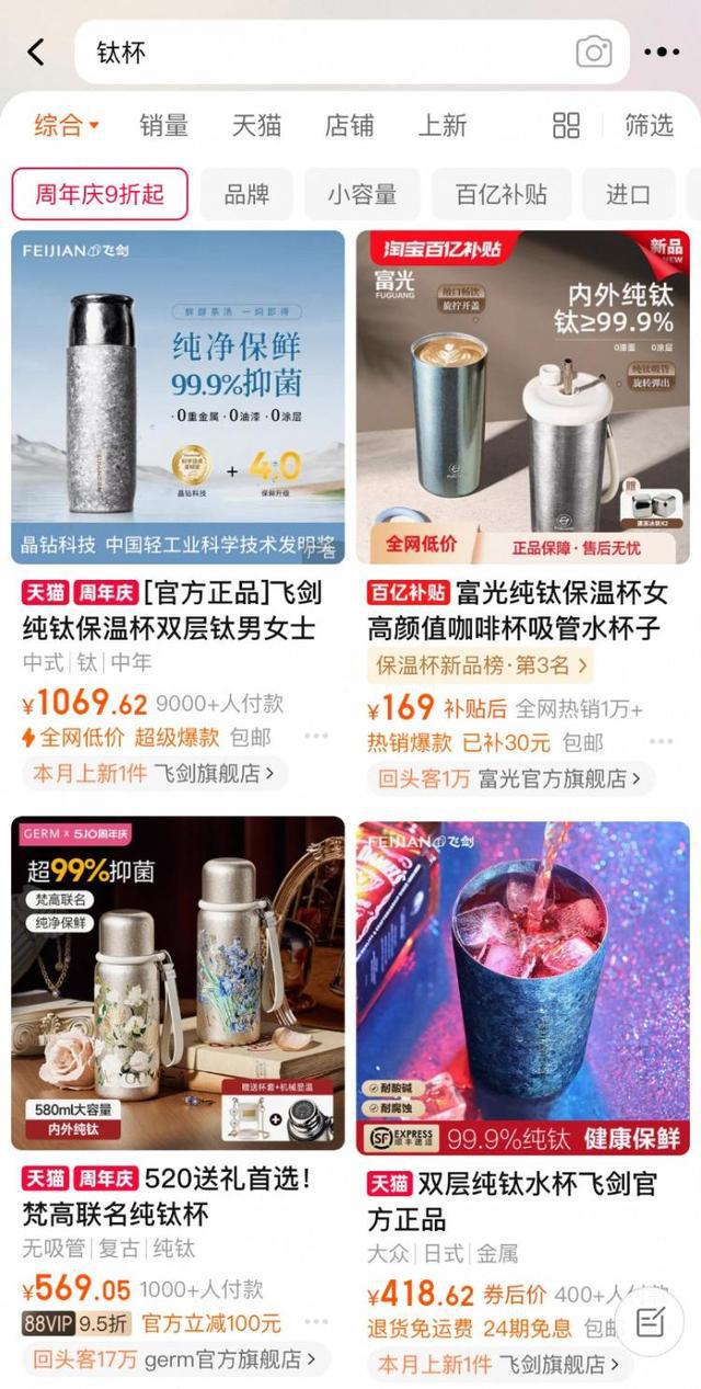 “种草了好久,还是买了一款价格在千元左右的钛杯。手感好,高端大气上档次,泡茶也特别好喝。不过它没有想象中的轻,而且保温效果太差。”消费者刘女士告诉记者,虽然钛杯被说是“智商税”,但自己不后悔买了它。“办公室很多人都有,不光是性价比,钛杯更加时尚也更加健康。”