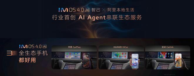 IM OS 4.0上线,AI Agent上车,沟通更智能,等于每天带一个随车助理。让车机交互实现No Touch & No App,苹果CarPlay / 华为HiCar / 安卓Carlink,全生态手机都能用。