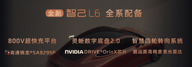 智己 L6全系标配高通8295 + 英伟达 Orin-X 双芯组合,搭载 IMOS 3.5.0智能座舱系统。其首创的 “全画幅数字驾舱屏” 集成补盲功能与雨夜模式,结合 DZT 虚实空间追踪技术,实时标记交通危险信息。