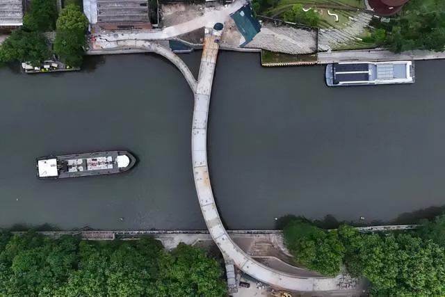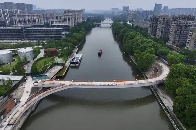 5月15日,随着小河公园跨运河人行桥的东岸梯道梁吊装到位,呈优美曲线的整座人行桥主体结构基本完成,下一步将进行桥栏安装、桥面铺装及周边配套等施工,预计今年年底建成开放。