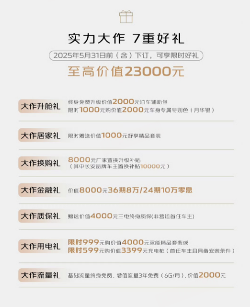 官方表示,在5月31日前下订,可享至高总价值23000元7重权益: