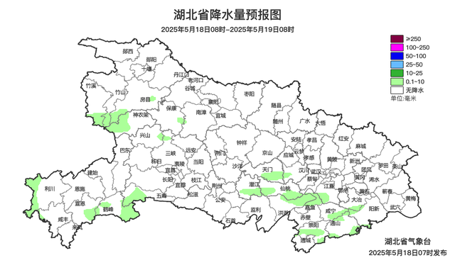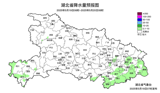 预报来源:湖北省气象台2025年5月18日08时预报