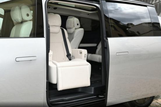 内饰方面,新车标配双15.7英寸3K OLED中控屏,搭载高通骁龙8295P芯片,二排升级为21.4英寸3K LCD娱乐屏,并配备双头等舱零重力座椅,支持45°、90°、180°电动旋转,可切换露营、亲子对坐等多种模式。前排新增静音电动门,可实现任意角度悬停,具备智能助力和防摔门设计,副驾配备升级版皇后座,带独立腿托,一、二排座椅均支持18点热石按摩和呼吸式通风。