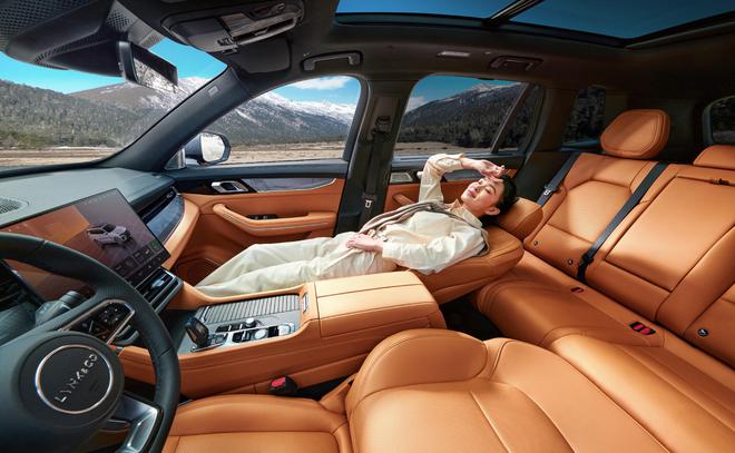 内饰标配NAPPA真皮座椅,前排支持8点按摩及通风/加热,女王副驾配备280mm一体式4向腿托和“一键女神模式”,后排座椅横向宽度为1366mm,坐垫深度540mm,腿部最大空间1130mm,后备箱容积691L(放倒后拓展至1522L)。此外,新车还配备LYNK OS N智能座舱、BOSE音响、四温区空调及海洋之谜香氛系统。