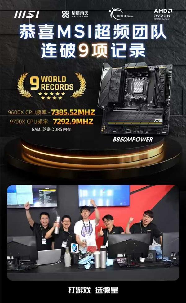 实力恐怖如斯!微星B850 MPOWER首秀连破九项纪录:9600X直冲7.38GHz