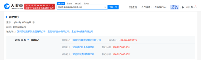 宝能集团及宝能汽车等被执行4.8亿