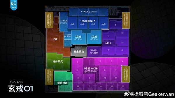 CPU采用十核架构,分别是2*Cortex-X925超大核+4*Cortex-A725性能大核+2*Cortex-A725能效大核+2*Cortex-A520超级能效核心。