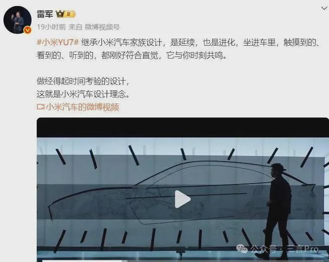 发布会演讲时雷军也表示,小米YU7遵循了小米汽车的设计理念:回归设计的本质,寻找符合直觉的美、符合自然的美、做经得起时间考验的设计。