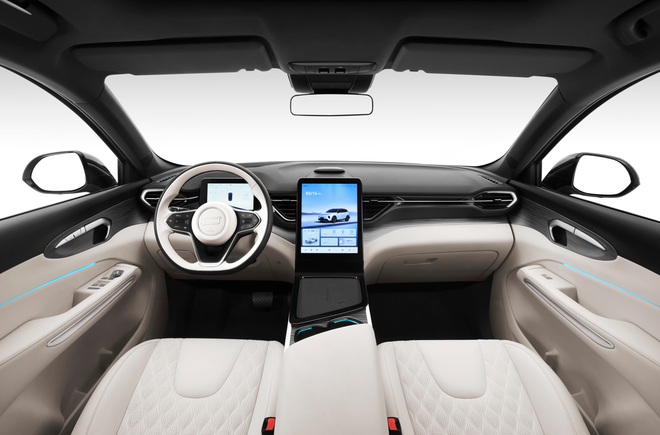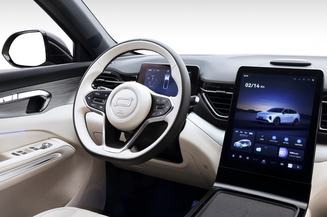 内饰方面,整体座舱采用T字布局,三辐式方向盘搭配全液晶仪表,整体风格经典简约,新车配备一块竖屏设计的大尺寸中控屏,从中控台向后延伸,并与中央扶手相连,内置丰富网联功能,科技感满满。