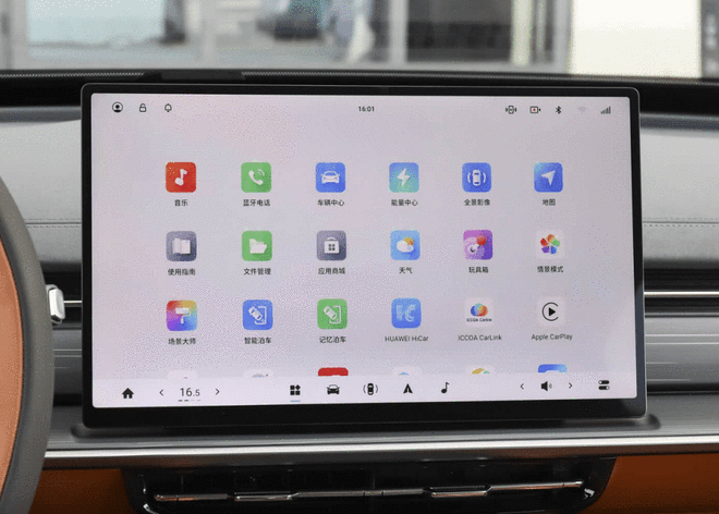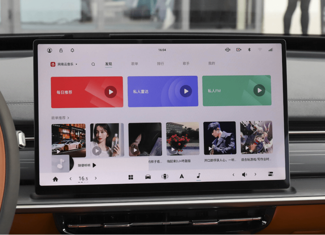 系统统采用卡片式交互设计逻辑,底部拥有菜单自定义栏,用户可将导航、音乐等高频功能固定首页,减少驾驶中视线偏移。分屏显示功能支持左侧导航 + 右侧音乐同步运行,切换流畅度达到60帧/秒,性能跟平板相差无几。