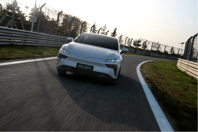 底盘方面,2025款eπ007的底盘由场地赛冠军团队调校,对于前悬架衬套刚度进行微调,后悬架弹簧K值增加5%,提升了高速变道侧向支撑。