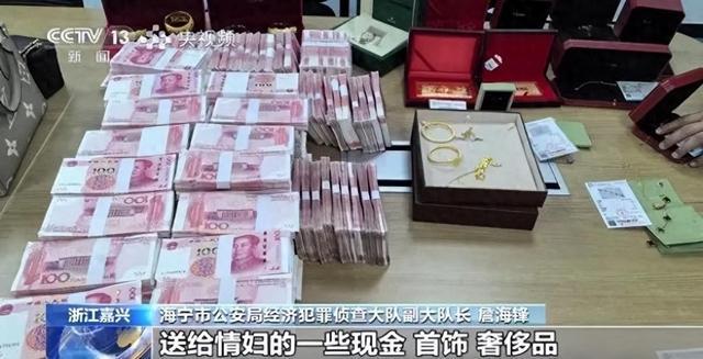 海宁市公安局经济犯罪侦查大队副大队长 詹海锋:这个案件总的涉案金额是5700多万元,包括了犯罪嫌疑人张某购买的车辆豪车,送给情妇的一些现金首饰、奢侈品,还有他自己购买的一些股票、房产。