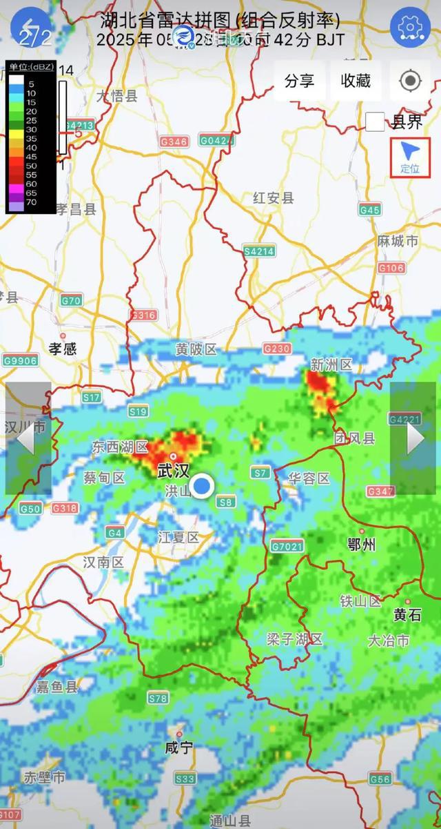 今日武汉气象部门发布消息称,昨天(27日)夜间开始,武汉市南部出现中到大雨并伴有雷电,江夏局地暴雨,较强降雨中心主要位于江夏西部、经开南部、蔡甸南部(有3个气象监测站监测的是暴雨,有25个气象监测站监测的是大雨)。
