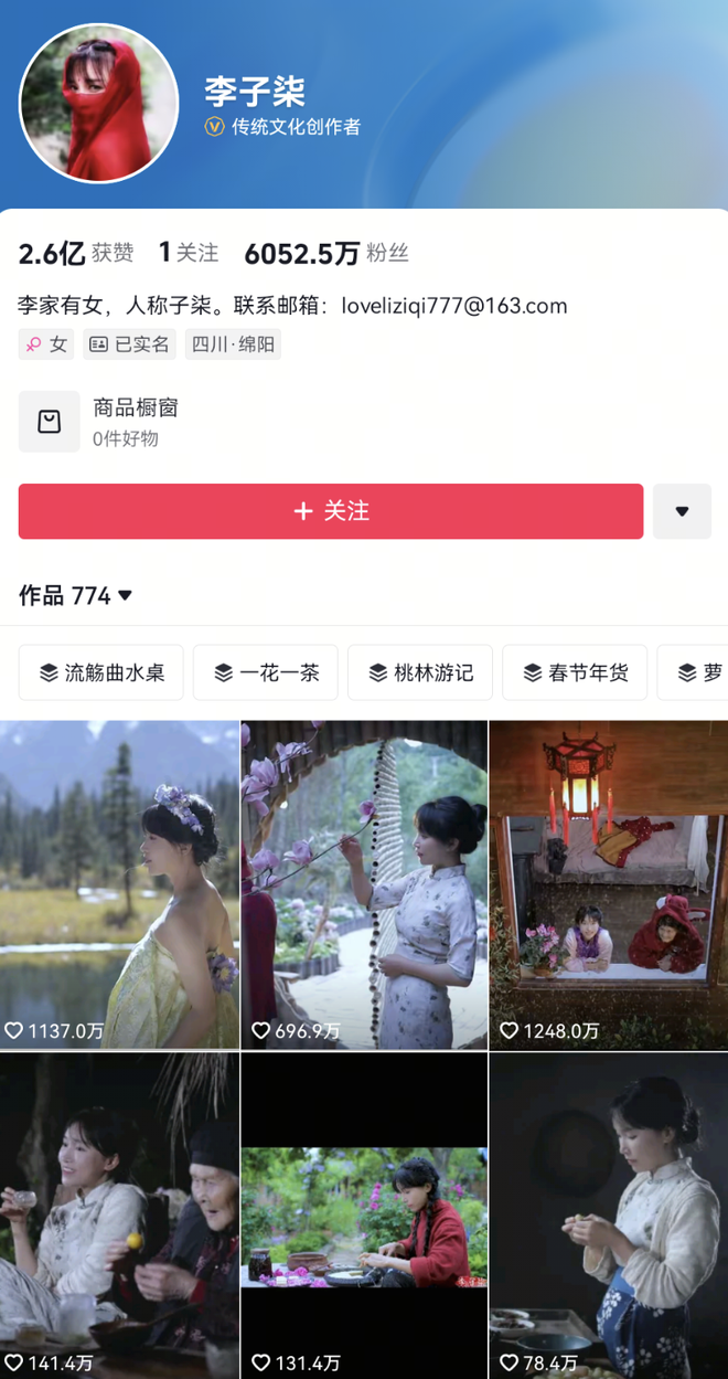 去年11月,李子柒在停更三年多后发布三条视频宣布回归,不过目前已近半年未更新。