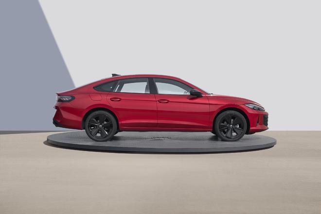 前脸LED大灯与车尾脉冲式流光LED尾灯通过贯通式腰线连接,勾勒优雅车身轮廓,呈现科技感轿跑型格。车尾配备一体化动感扰流尾翼与双边单出排气管,配合掀背式大尾门、无框四车门,展现轿跑运动基因。