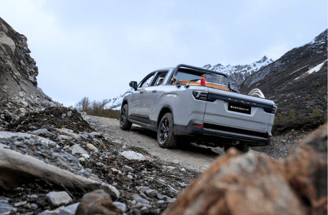 而发动机+3挡混动变速箱+后驱三合一电驱的组合,也让吉利雷达这两款皮卡爬坡有劲。新车都顺利通过了川藏线、青藏高原长爬坡测试,实现空载100%最大爬坡度、重载0.5吨65%的最大爬坡能力。实时动态调整四轮扭矩分配保证最强抓地力,而后驱扁线电机设计,让智能油冷散热性能强。