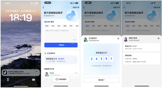 抖音推出官方动态验证口令 ,校验真假客服防诈骗