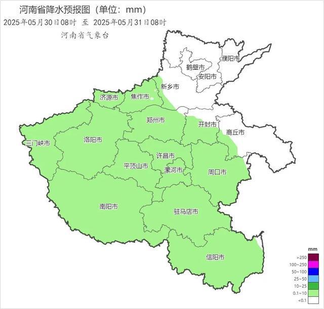 今天夜里,黄河以南和焦作、济源、新乡西部有小雨,主要降水时段在31日,黄河以南有小到中阵雨、雷阵雨,许昌以南地区预计会达到中雨及以上量级,南部有大雨,信阳局部将出现暴雨,降雨过程中伴有短时强降水。6月1日,中西部、南部有小雨,东南部有中雨,局部大雨,夜里全省降水趋于结束。