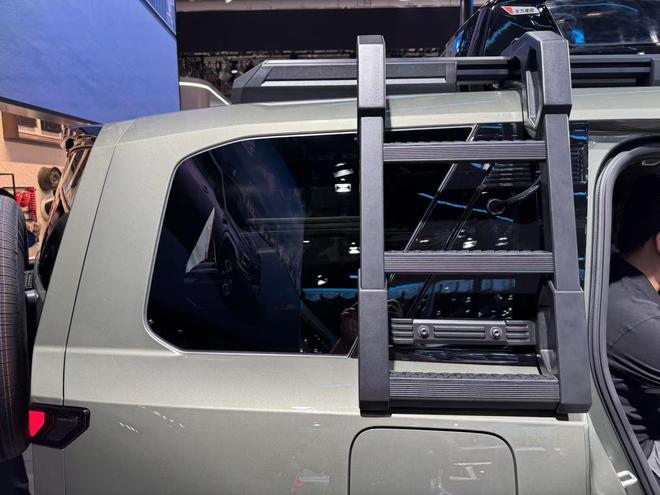 车顶部分采用了三颗激光雷达的方案,辅助驾驶方面是不输对手的。同时新车还将带来城市版和越野版车型,越野版车型将会换装氮气避震、防脱圈以及AT胎,看起来确实充满了野性的味道。车尾部分也是更多的考虑了自定义空间,不仅配备了外挂小书包,同时在侧后窗位置加入了可以自用定制功能的洞洞板以及悬浮挂梯。