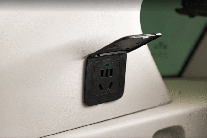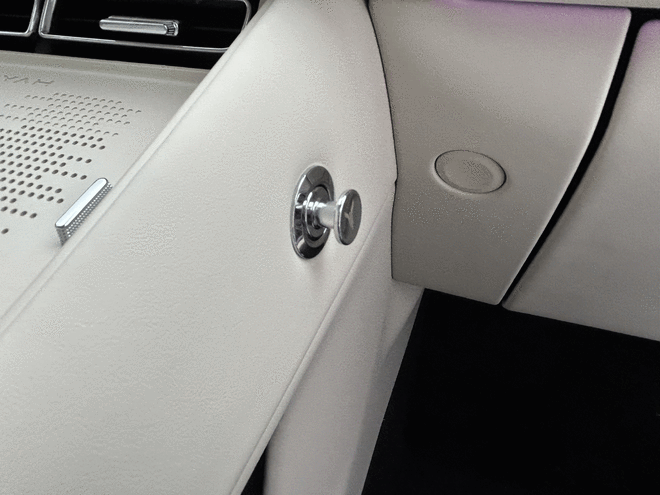 细节体验方面还能看到岚图FREE+给到的一些小心思,比如,新车副驾拥有智能美妆镜采用镜屏一体设计,支持日光级显色与三档色温调节;后备箱配备220V充电插座,拓展户外场景实用性;1.78㎡全景天幕搭配电动遮阳帘,紫外线隔绝率超99%,兼顾采光与防晒需求;中岛的副驾位置还准备了可伸缩的金属挂钩,可以满足一些手提袋的悬挂。