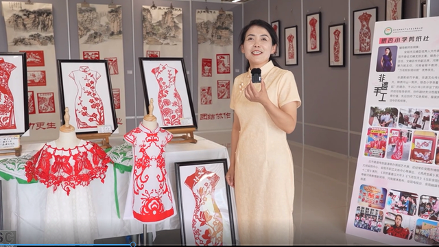 银杏小学剪纸社团、艺美社团参加了本次活动。剪纸社团以民间艺术赋能美好生活,让传统文化浸润入脑入心,以守正创新深耕非遗传承,结合传统非遗剪纸艺术,融合了牡丹、荷花、梅兰竹菊、青花瓷等纹样,创作出了云肩、旗袍等剪纸服装系列作品。其中银杏特色旗袍,融合了银杏叶以及祥云的元素,寓意为挺拔银杏昂扬志,绽放春华锦绣程。营造了时时、处处、人人的校园美育文化环境。在培养学生剪纸过程中,了解民俗风情、创作生活中的剪纸,增强文化自信,涵养美育情怀,在守正中不断创新,努力开拓我校校本课程的广阔空间与美好前景,让剪纸文化在与时俱进中生生不息,传承发展。使银杏小学尽显传统风雅,使中华民族优秀文化的根在课堂上得以延展。