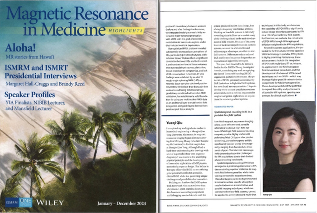 ▲磁共振领域权威期刊Magnetic Resonance in Medicine Highlights刊登邱月淇的采访介绍
