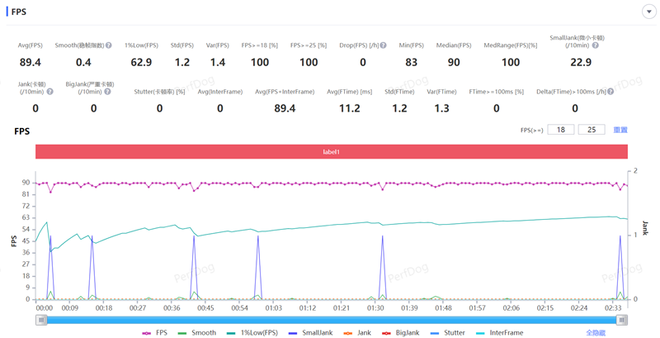 接着我们测试了枪战手游《使命召唤》,在流畅画质下可开启90帧模式,一局战术团队竞技对战下来,游戏的平均帧率稳定在了89.4FPS。