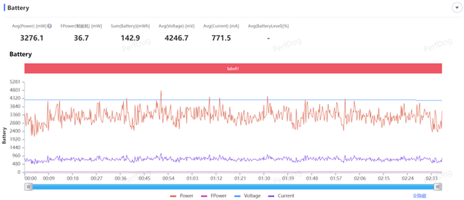 游戏的平均功耗为3.28W,能效比为27.29FPS/W。