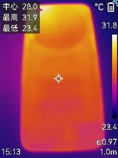 游戏过后,机身背面最高温度为31.9摄氏度。