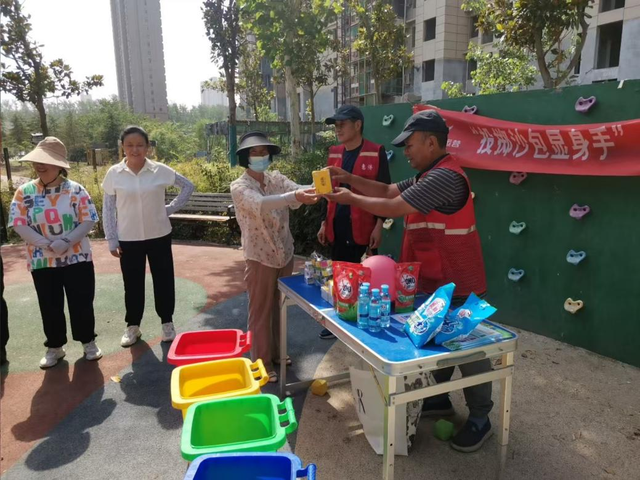进入投沙包环节,居民站定位置,将标有不同颜色的沙包投向对应颜色垃圾桶,投进次数决定奖品等级。孩子们兴奋地帮长辈递沙包、喊加油,年轻人则精准投掷,现场欢笑声、喝彩声不断。成功投进的居民,依据次数领取洗衣粉、抽纸、垃圾袋、香皂等实用奖品,没投进的也不气馁,向工作人员请教分类知识,准备 “再战” 。