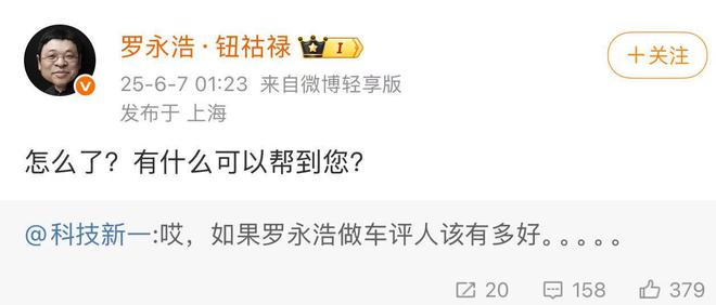 近日有网友发出感慨:“哎,如果罗永浩做车评人该有多好。”