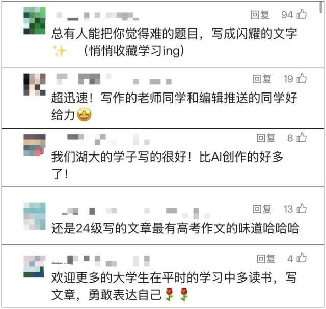 有意思的是,考完后大学生们也坐不住了。北京科技大学、湖北大学、华南师范大学的同学们纷纷动笔写作文。