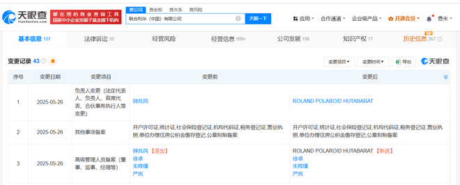 天眼查App显示,近日,联合利华(中国)有限公司发生工商变更,钟兆民卸任法定代表人、董事长,由ROLAND POLAROID HUTABARAT接任。