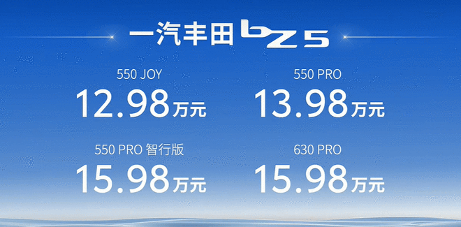最高630km续航还有激光雷达+9气囊 一汽丰田bZ5售12.98万起